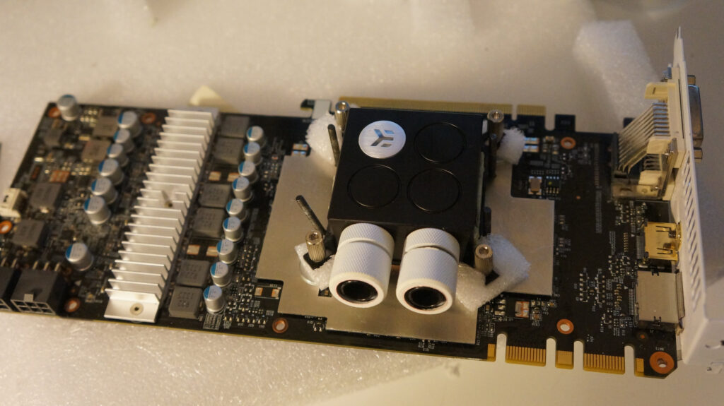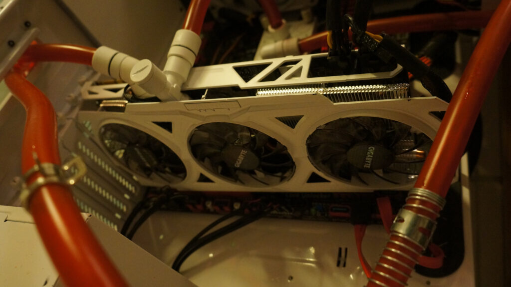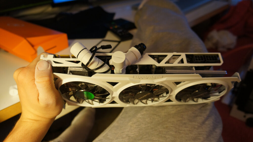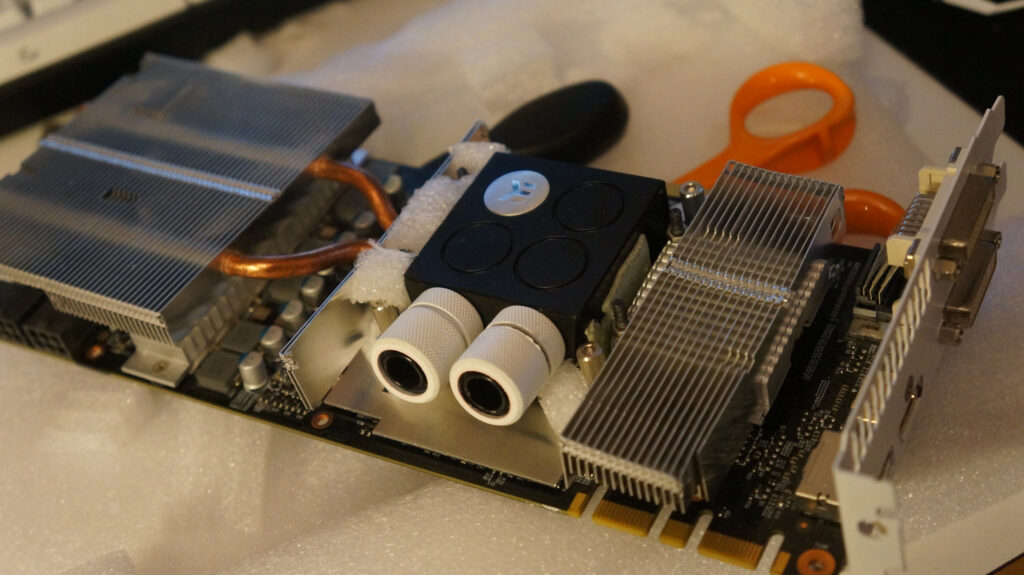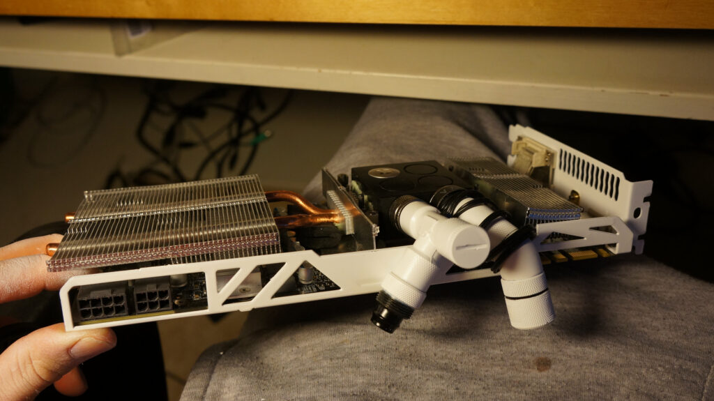Hardware-wise, nothing on the card itself was modified, only the cooler and the card was painted. This was my first ever brand-new GPU, so it took some time and thinking before I finally got the guts to start this project.
