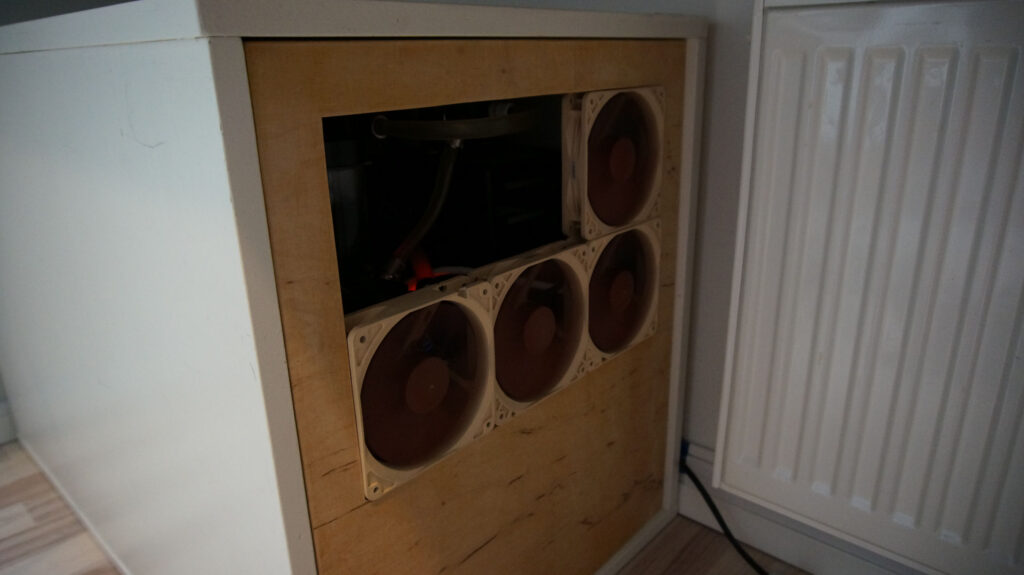 I’ve made door to this cabinet also back in the day, added hole for fans (6x120mm) and a corner for USB/Audio ports. A little bit of color and looking great! Ended up using Arctic P12 and P14 fans for great price and performance. Also PST chaining worked wonders for this build totaling over 14-fans.