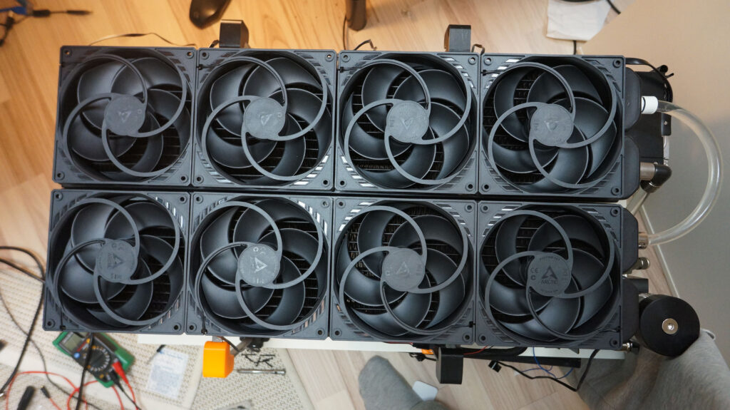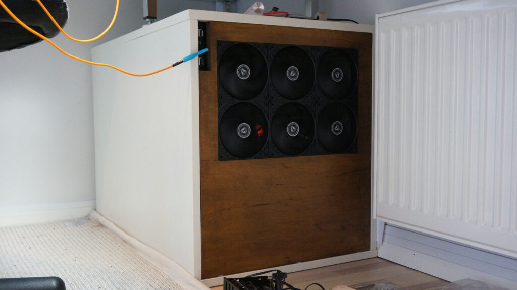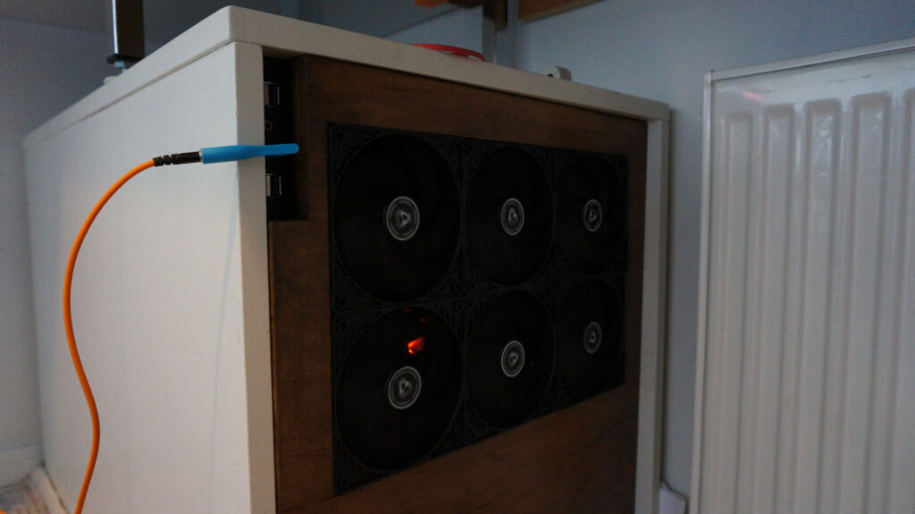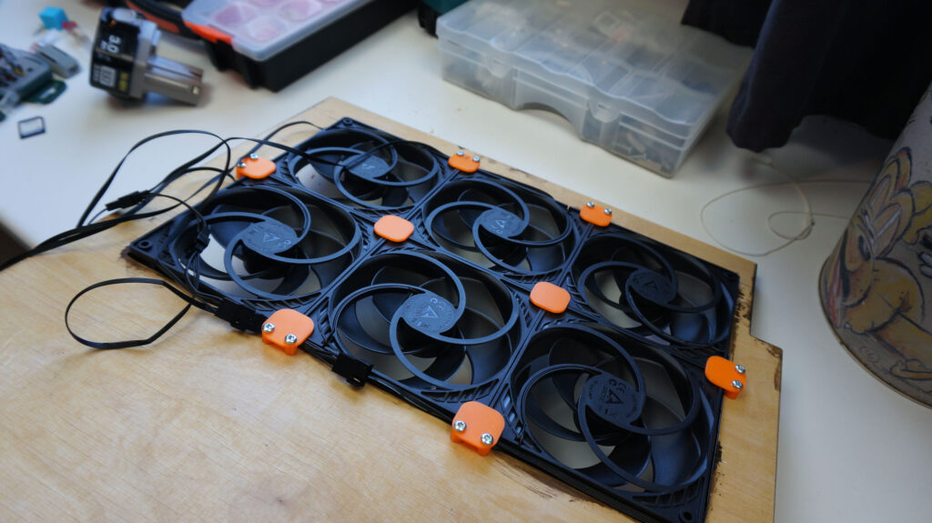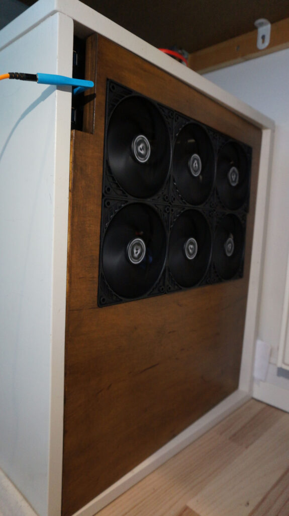After this, it was time to start designing, 3D printing, and assembling frames to hold radiators on top of the cabinet! This turned out perfectly and was quite easy to make. Frames connect to the board with screws.